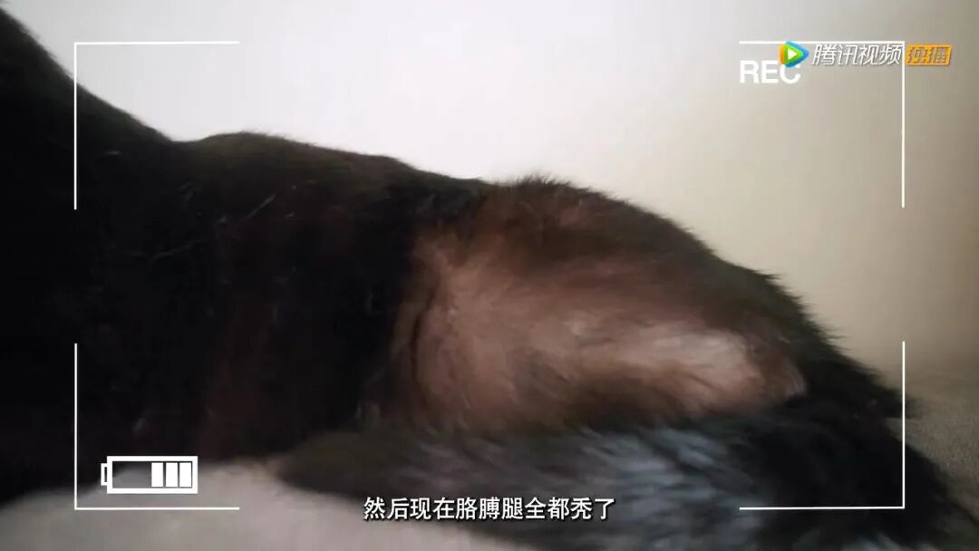 它压力非常大,每天都不高兴,不停舔毛。最后,竟然把自己舔秃了。手毛和被毛掉了一大块,看着特别可怜。
