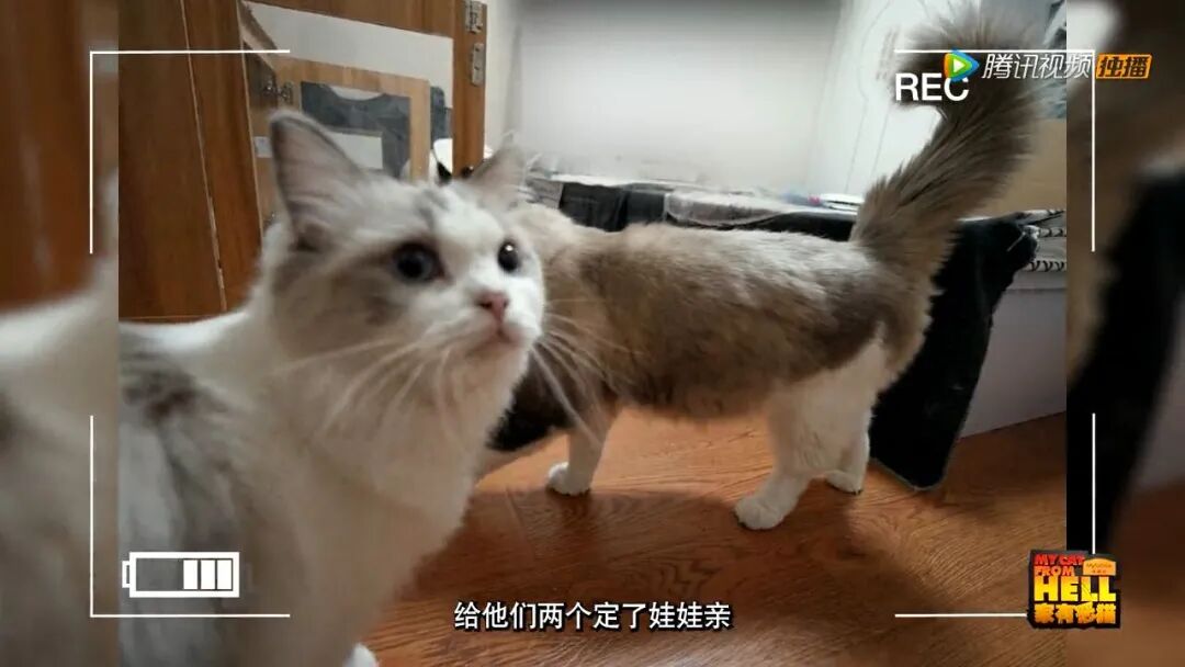主人给他俩定了娃娃亲,希望两只猫能像小夫妻一样,恩恩爱爱。所以,舍不得给它们绝育,希望它们也能感受到爱情的快乐...