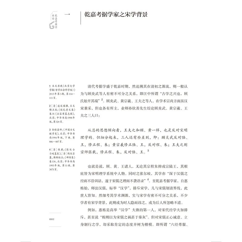 也正因为如此,虽然笔者识见浅显,愚拙固陋,但这部论文集也还有椠行的必要性。此册集子取名为《乾嘉考据学新论》,有两个缘由:一是所收论文中有《乾嘉考据学新论》一文,故以篇名代书名;一是所收十八篇文章,发表时间有迟有早,虽多不能算新,但对于大多数读者而言,可能皆未寓目,故仍然算得上个“新”字,所以就勉强凑了这么个书名。所选论文,也涉及乾嘉考据学的方方面面,无论是所讨论的专题,还是资料的搜求,都力图突破前贤,对旧说多有纠补,也提出了一些自己的看法,希望能给读者起到发踪参考的些微作用。