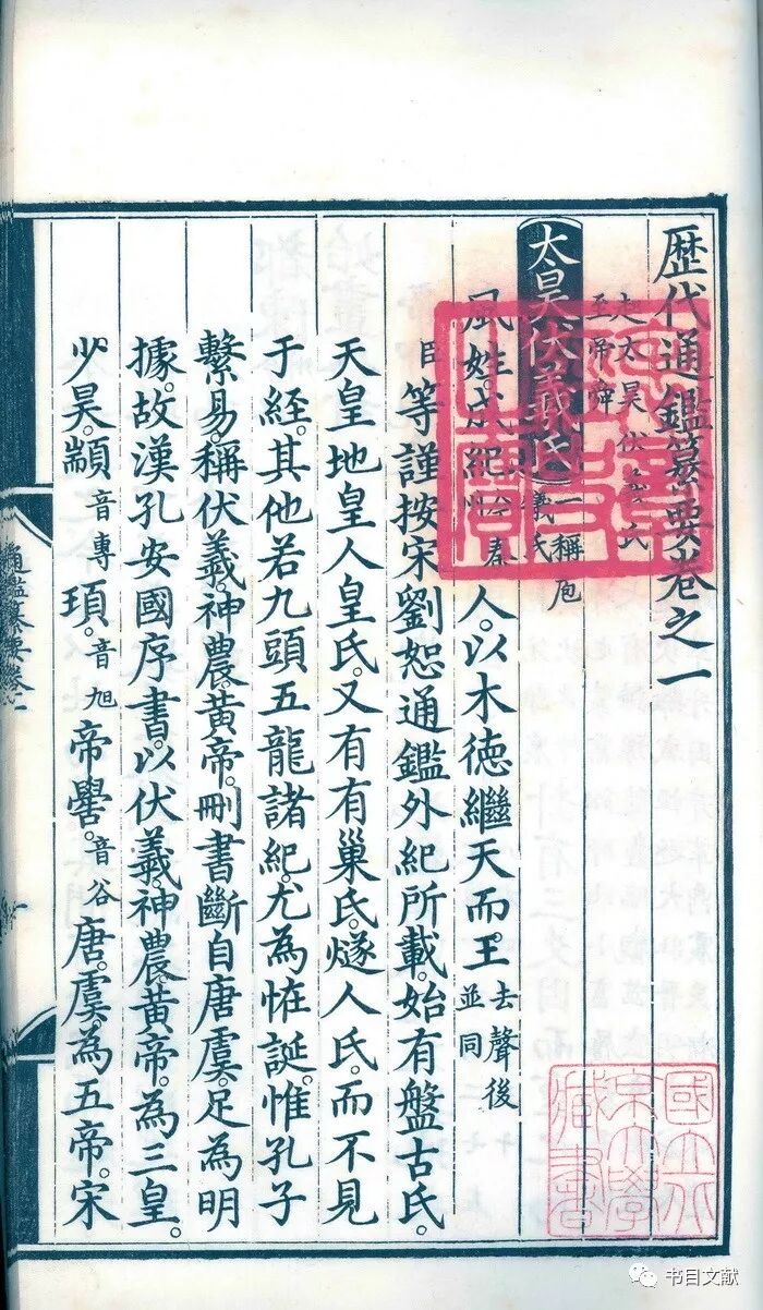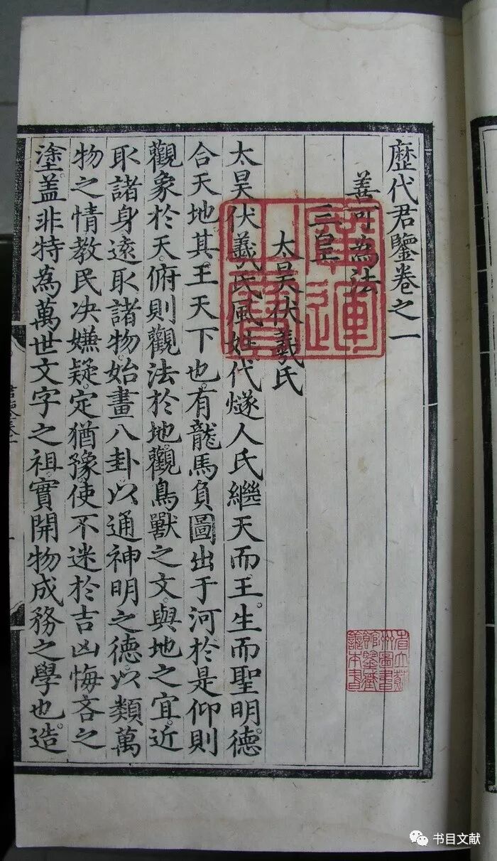 《交泰殿宝谱》云:“表章经史之宝,以崇古训。”意即表彰经史、尊崇古代训示。存世内府刻本钤有“表章经史之宝”者,非经即史,这一点在内府所刻通鉴类史书中表现尤为明显。(插图16)