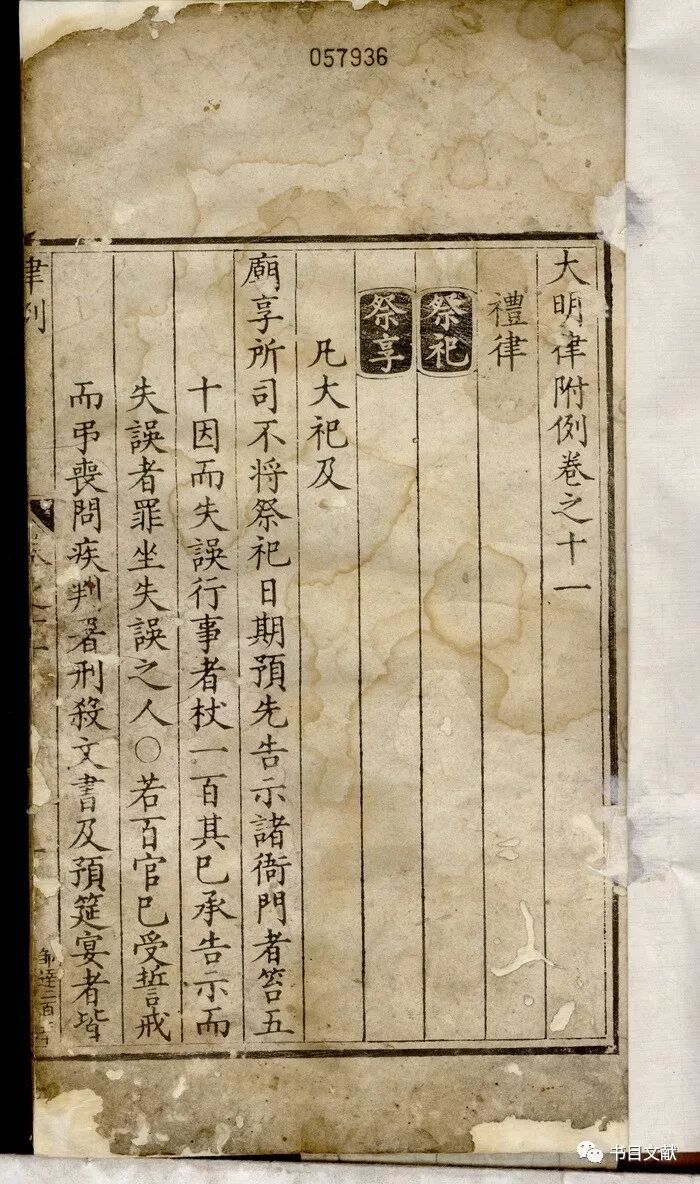 一是从构建国家统治秩序的角度,刊刻了《大明集礼》《军礼》《皇太子亲王及士庶婚礼》《官员亲属冠服之制》《官民相见礼》《乡饮酒礼》《大明律》(插图3)《御制大诰》《御制大诰续编》《御制大诰三编》《大诰武臣》等一系列礼制图书和具有最高法律效力的书籍。这些国家礼制与法律相关的书籍均由内府初刻,颁赐天下,构建起了明代基本的国家法律制度。