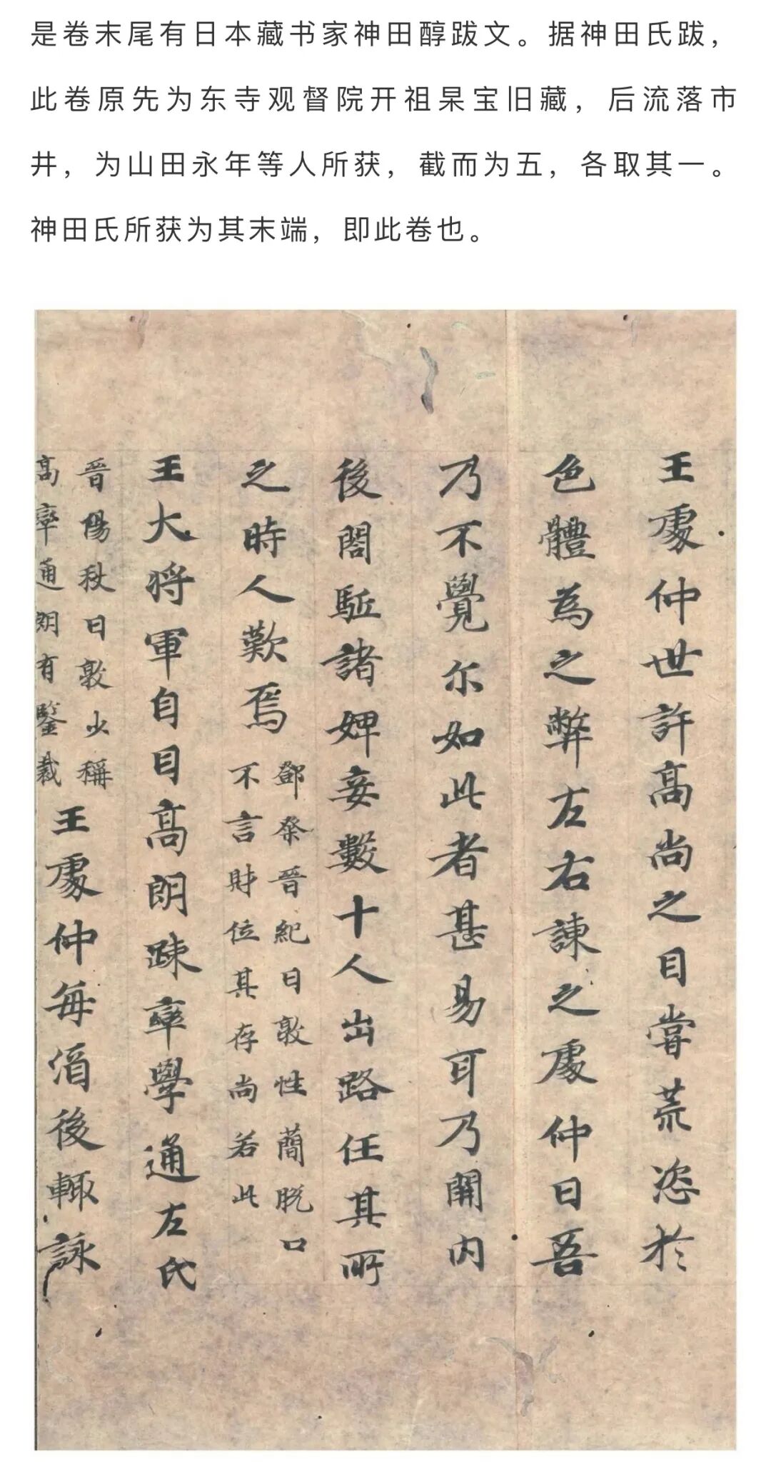 《王勃集》卷二十九、三十为富冈谦旧藏,后归东京国立博物馆。卷二十九首行题“集卷第廿九”。目录有“行状”《张公行状》一首;“祭文”《祭石堤山神文》一首、《祭石堤女郎神文》一首、《祭白鹿山神文》一首、《为虔霍王诸官祭故长史》一首、《为霍王祭徐王文》一首、《祭高祖文》一首。又《过淮阴谒汉高祖庙祭文奉命作》一截为神田信醇旧藏,后归东京国立博物馆。此卷即卷二十九目录中所载之《祭高祖文》。