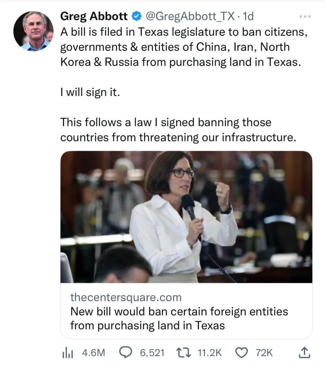https://www.thecentersquare.com/texas/new-bill-would-ban-certain-foreign-entities-from-purchasing-land-in-texas/article_d1604e42-94eb-11ed-a16d-57b52d89086c.html