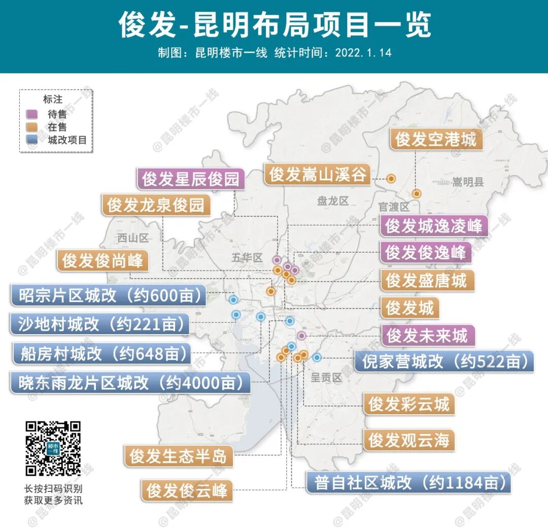作为昆明城改排头兵,俊发还手握至少6个城改项目,如沙地村城改、船房村城改等,规模共7000多亩。招商蛇口在昆明目前有7个在售、1个待售及1个城改项目,“粮仓”较充足。