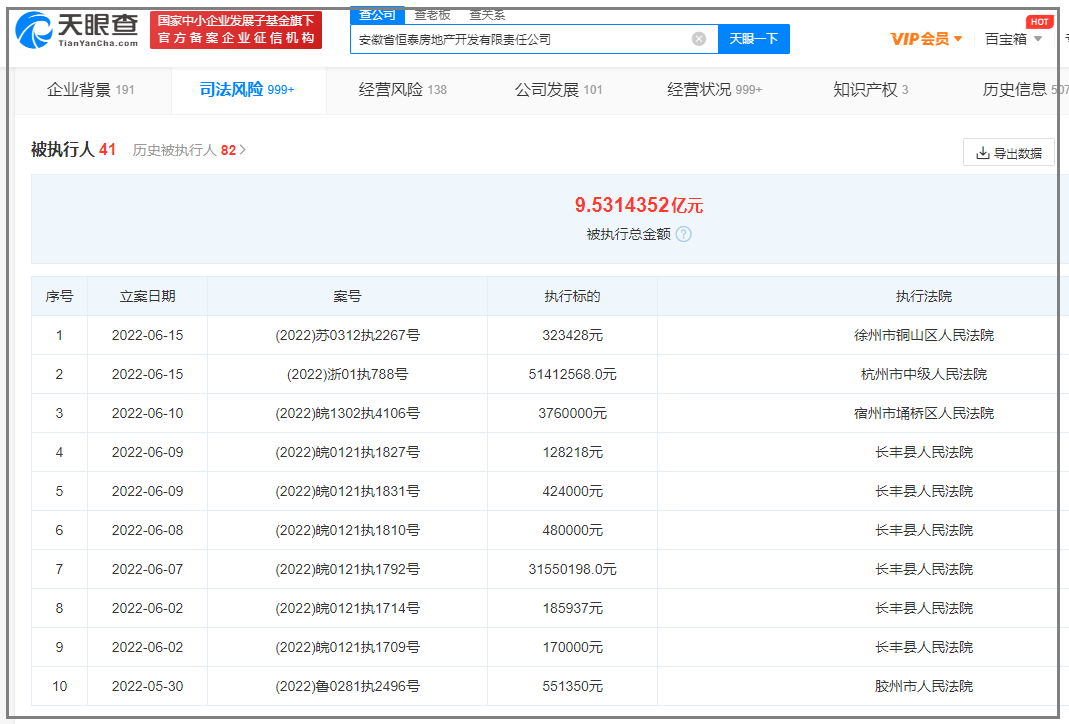天眼查显示,恒泰地产目前被执行金额达9.5亿,不仅涉及司法冻结,公司也被列为失信被执行人。