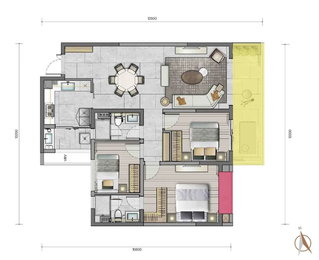 据悉,本次开盘首推A4地块10栋2T4户板式精装产品,主打125㎡、143㎡、183㎡大户型,覆盖3房至4房。项目最小的125㎡户型是方正通透的3室2卫布局,空间宽敞舒适,同类产品中难得一见。