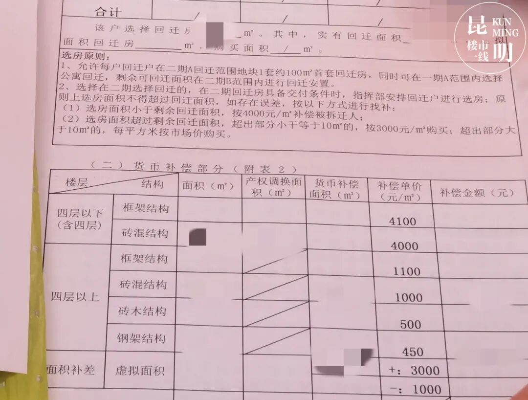 如选房面积小于剩余回迁面积,按4000元/平补偿被拆迁人;