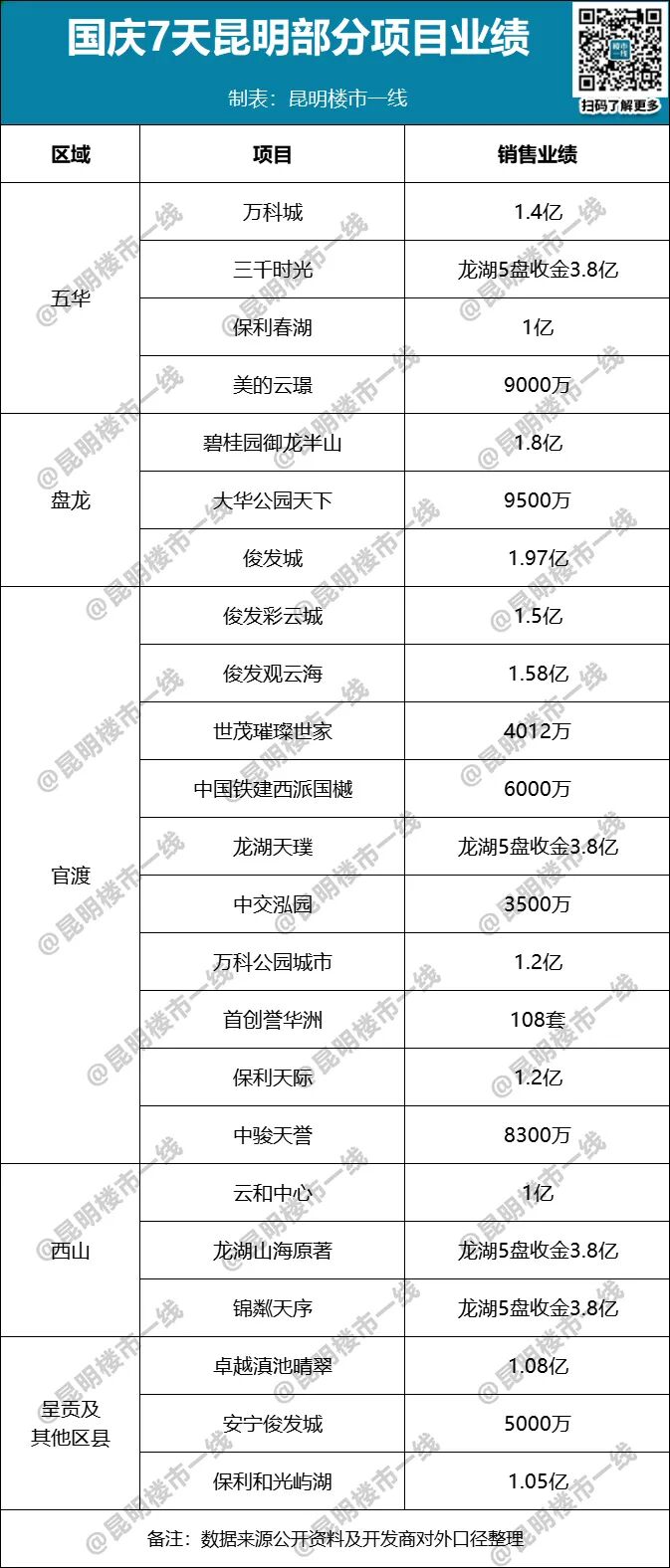 同时,项目去年的总销售面积还杀入全国TOP19。官渡会展板块万科公园城市,国庆期间卖出66套,销售额1.2亿。