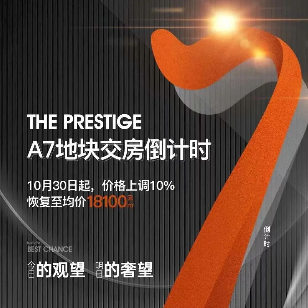 中骏天誉称,A7地块交房倒计时,10月30日起价格上调10%,恢复至均价18100元/平。