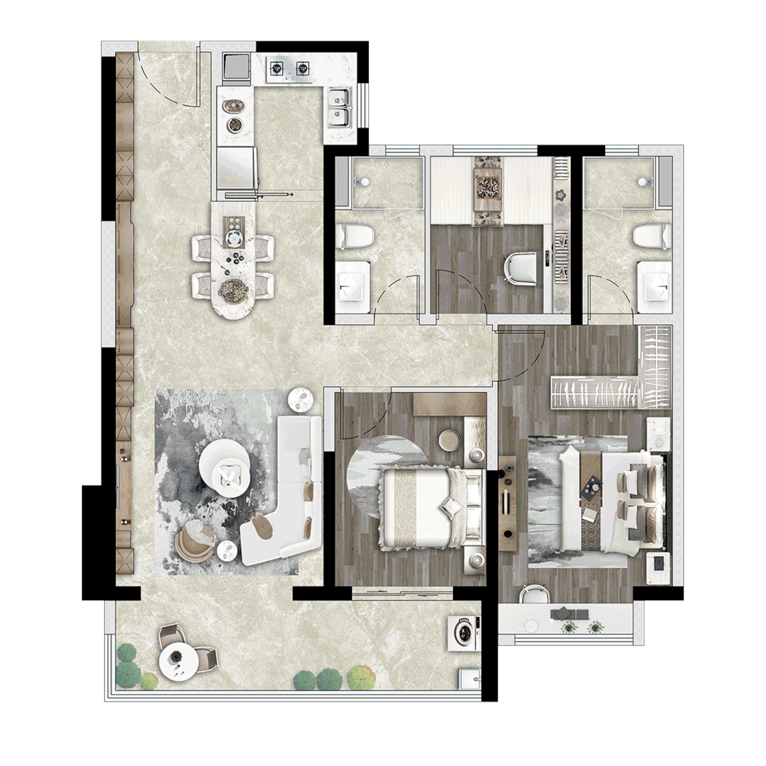 想要生活全面进阶,可选择项目约143㎡的4房户型,能完美装载三代同堂的家庭生活。