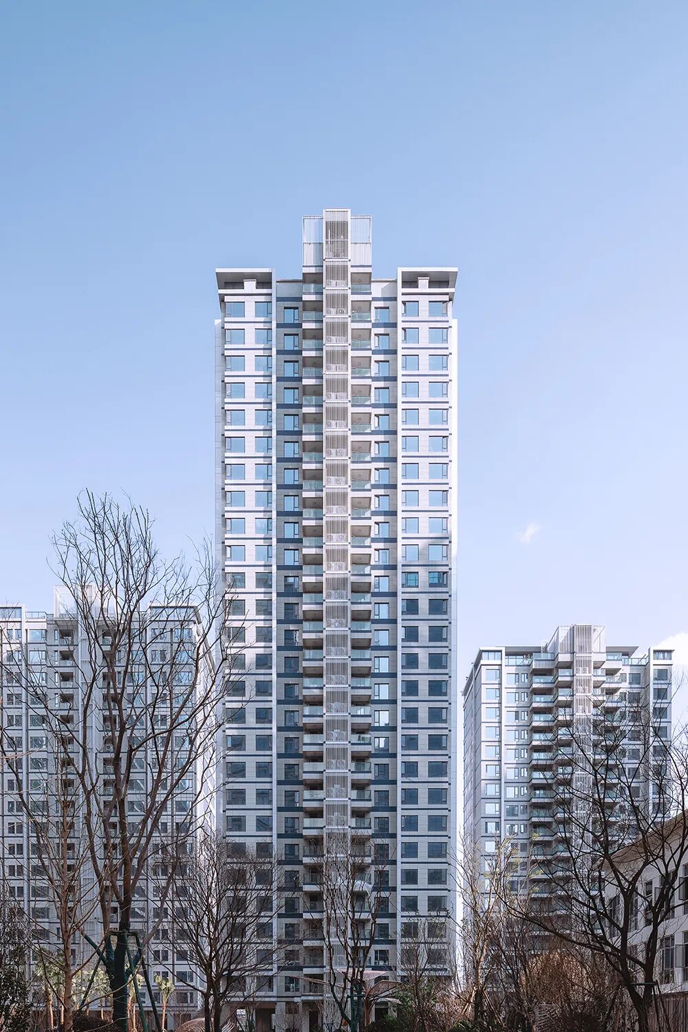 小区外立面采用线条和白金色彩搭配,第一眼便是现代与精致的视觉盛宴。首层入户大堂则采用石材和铝板装饰,其余楼层以米白色和深灰色为主,简洁大方的同时,又不失品质感。