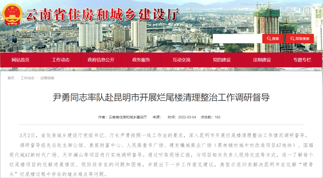 今年3月,云南省住建厅厅长尹勇在工作调研中也表示:既要化解现有存量烂尾楼,更要举一反三,坚决防止新增烂尾楼。