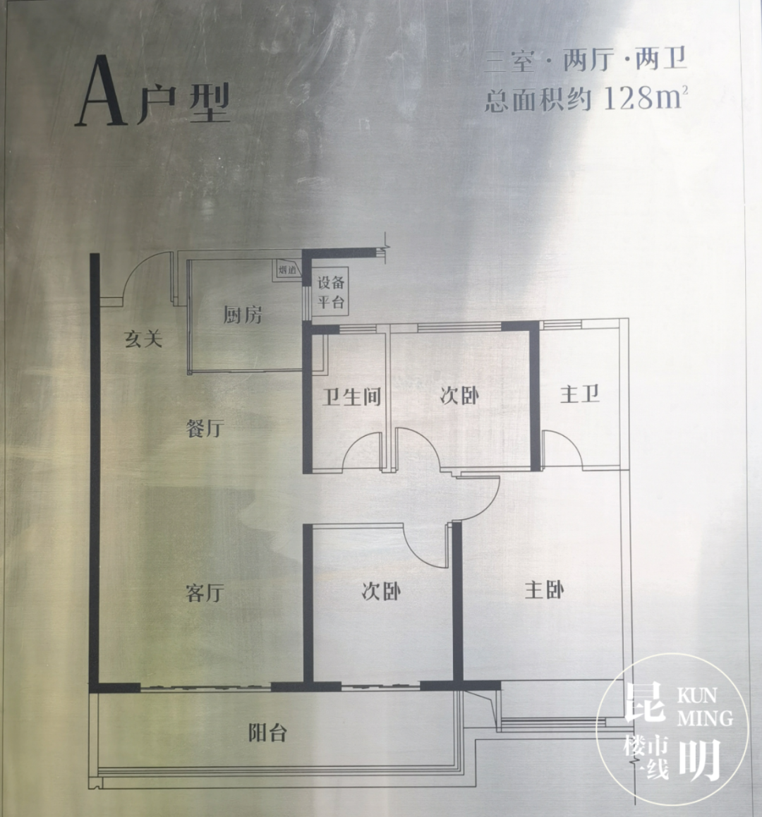 先来看最小的128平户型,为3室2厅2卫设计,格局方正,功能齐全。
