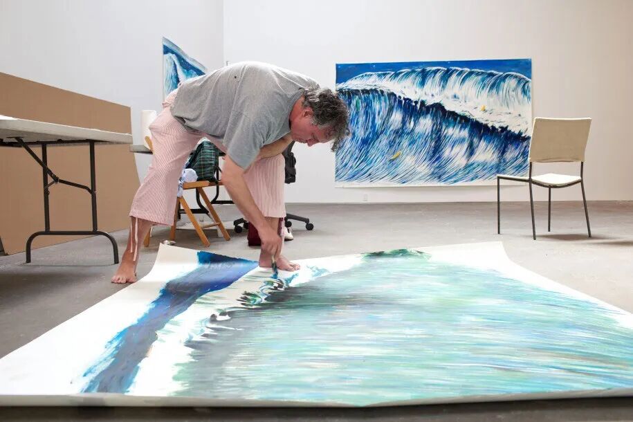 雷蒙德·帕提伯恩(Raymond Pettibon),2019自上世纪70年代起,雷蒙德·帕提伯恩(Raymond Pettibon)独特的绘画奠定了当时南加州青年文化的视觉面貌,并推动确立了绘画这一媒介在当代艺术中的位置。帕提伯恩一次又一次地描绘面对巨浪吞噬的勇敢冲浪者。他充分地深入这个创作主题,激发其中所有崇高的、寓言式的共鸣。在古波利尼西亚人(Polynesians)看来,冲浪是一种精神性的仪式,自1960年代以来,它开始具有反主流的文化特质,也让帕提伯恩能够探究其中深浅各异的层次意涵。帕提伯恩在多种创作媒介中都持续地回归海浪的创作,这种实践帮助他不用去到室外、仅仅在工作室里就能达到一种“流动的状态”。![]()