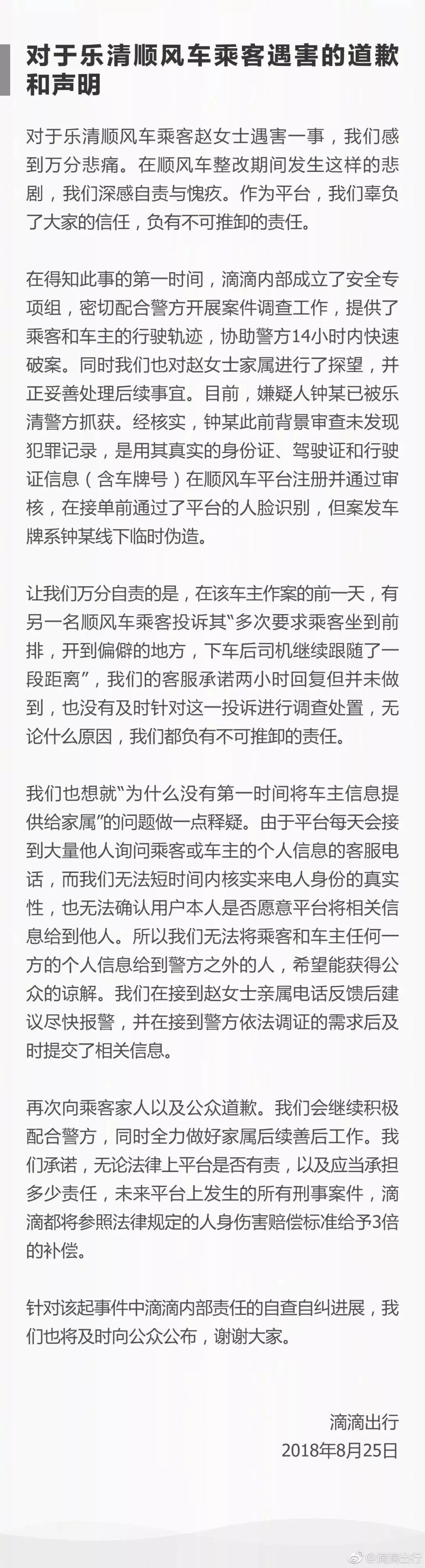 真相虽然来处有些迟,但毕竟还是来了。警方千方百计向滴滴公安调取相关资料,然而滴滴却拖延了很长时间。为此,滴滴公司也发布了道歉和声明,这个声明中回避了向警方提供涉事人员车辆信息的具体时间,作为矫正,对案发前的另一件事拿出来进行说明。