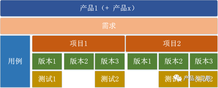 产品本身会涉及多产品、多产品线,每个产品下面又包含多个需求,再细分就是项目、版本、测试这些内容。