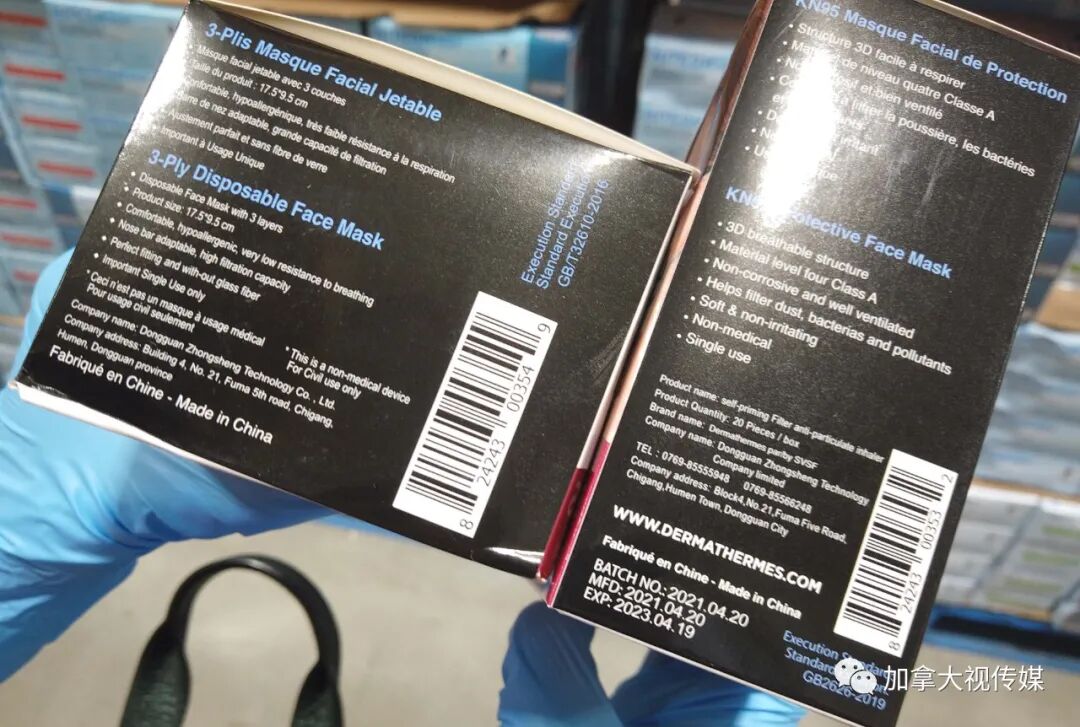 现在加拿大市场上出售的口罩,也绝大部分都是“中国造”。