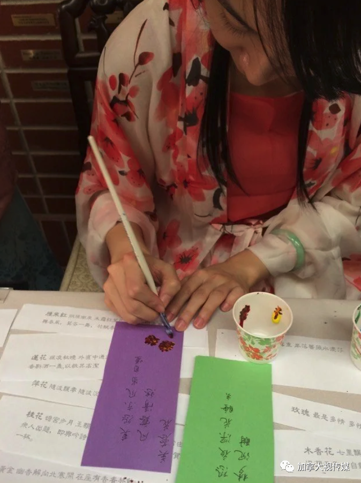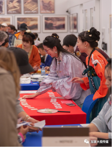 一些汉服秀的活动上,观众可以换上自己喜爱的汉服到具有中国特色的摊位,如书法、剪纸、糊灯笼、绘团扇等摊位学习,拍照,感受中国的传统文化。