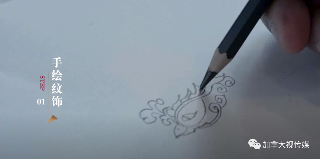 先一笔一笔地手绘纹饰,力求所有图案都100%依照史实。再用电脑勾图、上色。