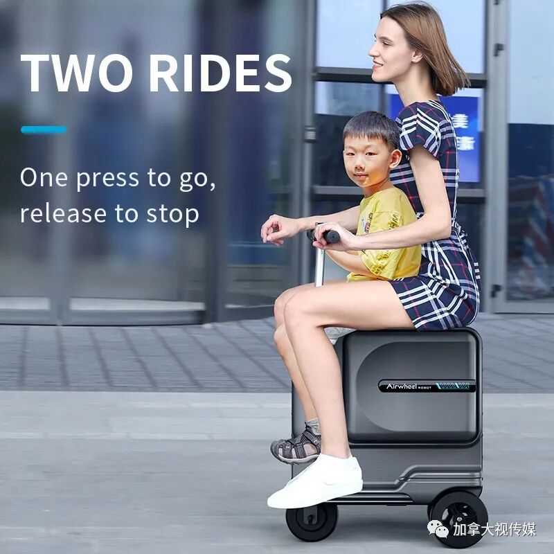 它的旅行箱最大的卖点就是可以“骑行” ——可以前进、倒车,还具备刹车功能。