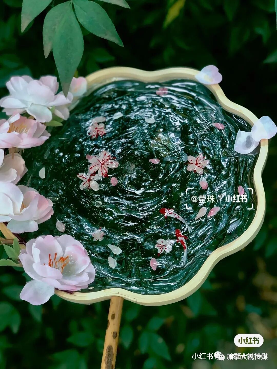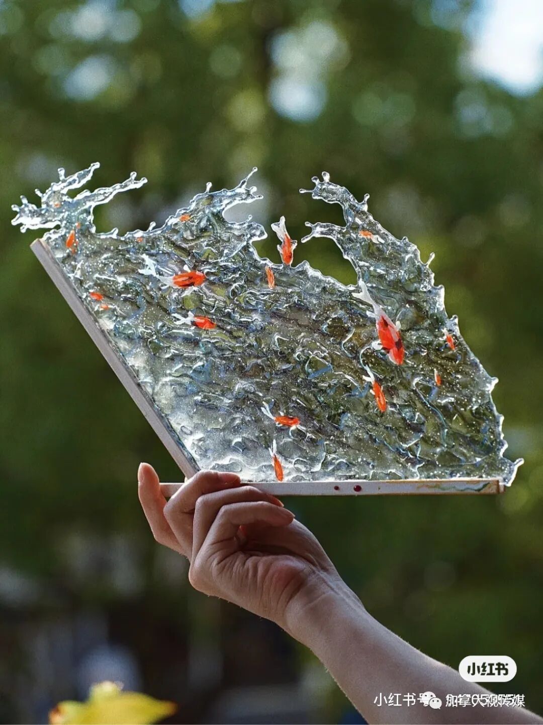 最近的自媒体上,流行起了一股用UV胶做夏日锦鲤水扇和桃花锦鲤水扇的风潮,其中一个平台的制作过程视频点赞量高达25万。