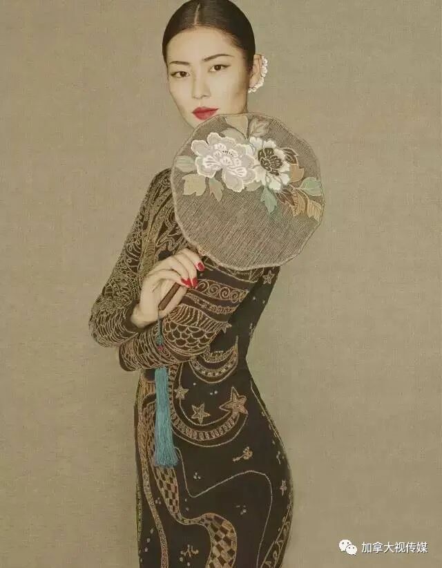 孙郡为中国超模刘雯拍摄的《时尚芭莎》唯美大片“镜花水月”,高级定制礼服和团扇演绎东方之美