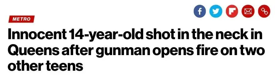 一条普通的放学归家之路,却给3位高中生带来了恐怖的记忆!一群纽约高中生在放学回家路上遭到街边混混的枪击,3名学生不幸中弹,其中1名14岁华裔女学生颈部中弹情况危急。