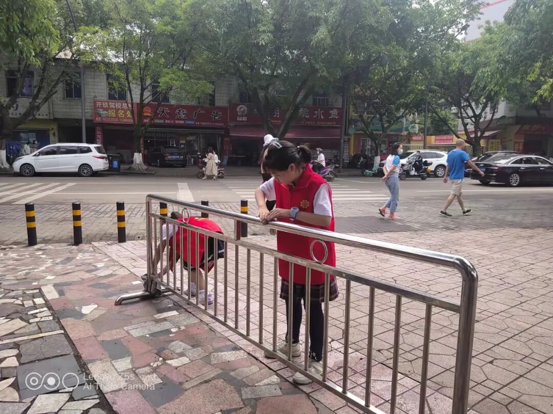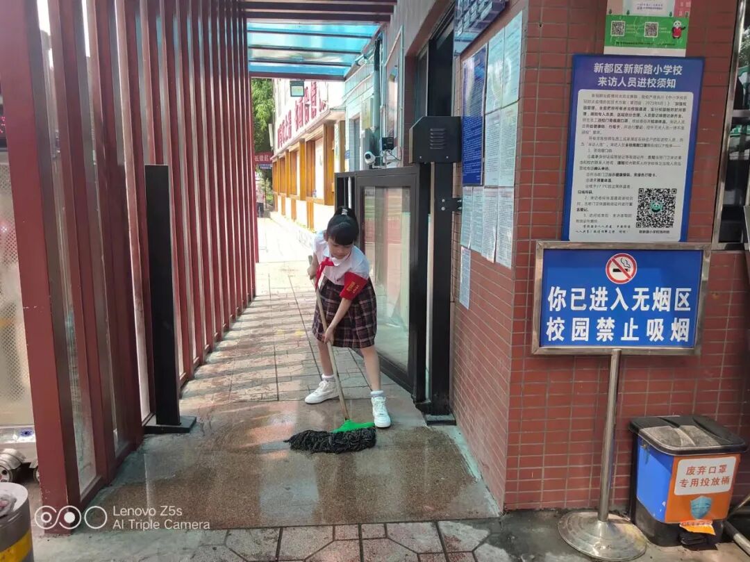 完成校内卫生角后,我们的志愿者走出校园,开始进行校门的清洁。擦花台,护栏,警示桶,指示牌,扫地,拖地撸起袖子大家伙热火朝天的干起来。
