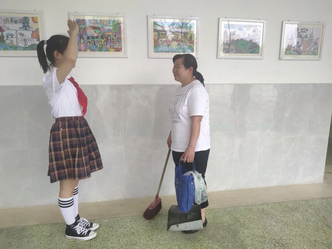 平时是保洁阿姨在工作,今天我们自己上!让阿姨们休息,我们向阿姨日常的付出说声:“阿姨,您辛苦了!”