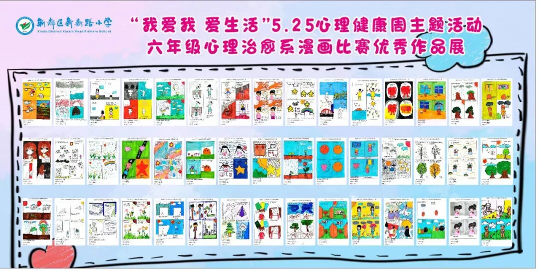 我们在六年级举行了心理治愈系漫画比赛,孩子们通过四联漫画的形式将心理活动、体验及内心感悟表达出来,达到疗愈自我以及他人的效果。我们希望同学们通过创作心理漫画,普及心理健康知识,正视生命价值,提高心理健康水平和自助能力,形成良好的人际交往和学习心态,在快乐中感悟人生。