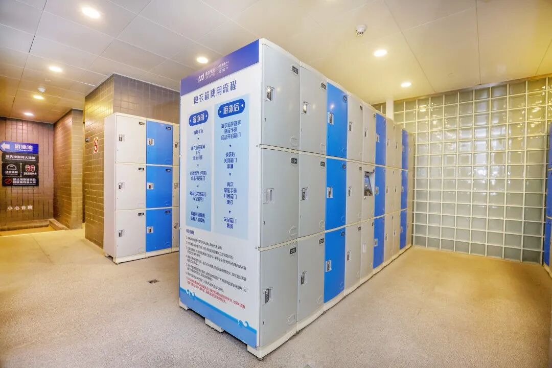 设施高端大气,淋浴间水量充足,热水淋浴非常舒服。除此之外,让人感到最高端的便是游泳馆的“门票”——是个可穿戴、可防水的智能手环。佩戴手环即可自助完成进场、选用更衣柜、超时补费、扫码离场等一系列流程,一套操作下来丝滑又流畅,硬核黑科技绝绝子!