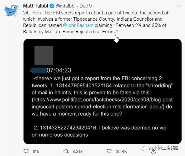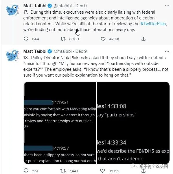 “(17). 在此期间,推特高管显然还与联邦执法和情报机构就与选举有关的内容的审查进行联络。虽然我们仍处于#TwitterFiles 的审查初期,但我们每天都在了解有关这些互动的更多信息。”