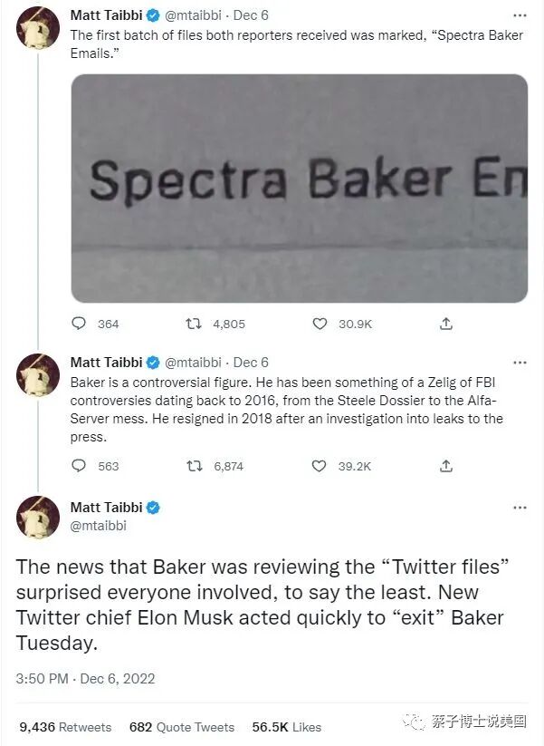 “Baker主导Twitter Files这个新闻惊呆了很多人。马斯克迅速地把他开除了。”