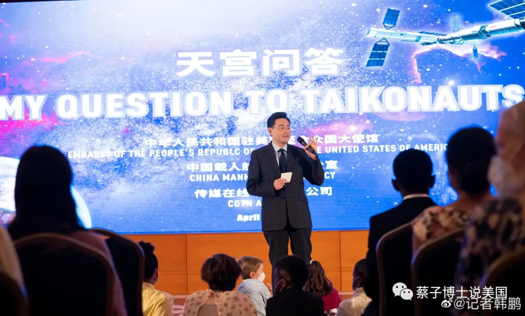 2022年4月9日,中国驻美国大使馆举行了“天宫问答”的活动,邀请美国小朋友向天宫三位宇航员提问,非常的有意义!秦刚大使是我非常欣赏的一位外交人员,务实,有远见,有方法,非常的看好!再次再有类似的活动,一定让清清云云也参与!