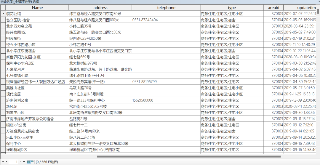 下图为全部的POI点位,需要从字段类型中筛选出居民住宅点。