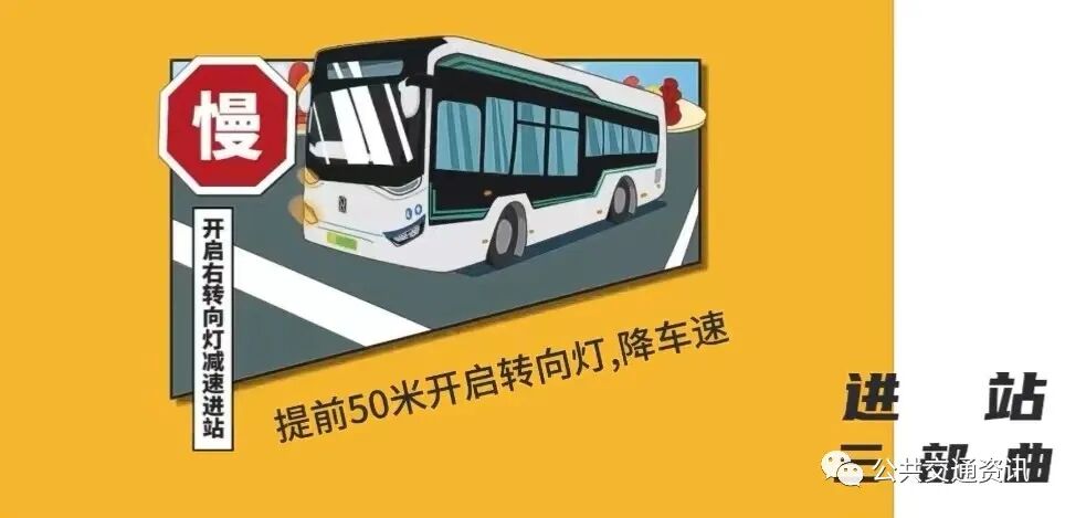 公交车辆靠站停妥后才能开门上、下客,同时在车门关闭3秒后方能起步出站。