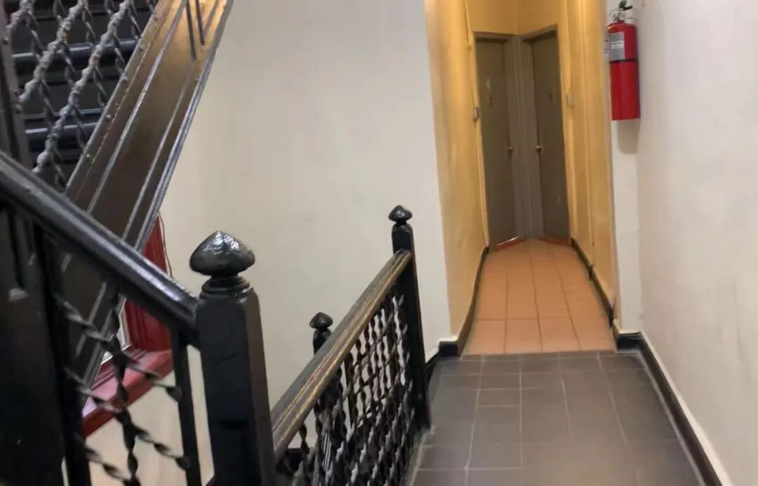 “我住在这里30多年了,觉得这里的治安一直很好的,真的很好的,这是第一次发生这种事情。”郑大爷说。郑大爷和他老伴住在5楼的一间小公寓内,公寓很简朴,也比较老旧了,就只有一个卧室,一个厨房和一个卫生间。他说这里的房租也很便宜,他因为住的时间长了有政策优惠,自己只需要花几百块钱租金,而近年来新到的租客会花多一点,但据他了解大约也就是一两千块钱一个月,楼里户型基本差不多。“以前住的全是中国人,这些年有少数老外了。”