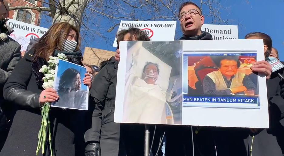 2022年2月15日,李尤娜被杀害后的第三天。连续三天,李尤娜居住并遇害的曼哈顿中国城公寓楼下召开了三场新闻发布会兼社区集会。第三场由韩裔社区组织大纽约韩裔美国人协会(KAAGNY)发起。韩裔群体在纽约的人口只有0.7%左右,即便是在占总人口15%的亚裔人群中也是少数,但是2月15日中午11点,当集会开始的时候,来自华裔社区、非裔社区、意大利裔社区、犹太人社区等等不同种族的人们都来到了现场。