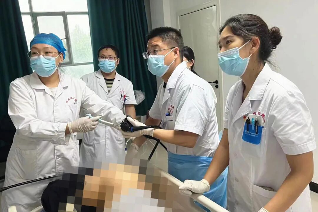 然而,保守治疗效果不理想,普外二区突然想到是否可经肠镜取异物,于是立即邀请内三科会诊。在排除消化道穿孔及肠梗阻等问题后,援疆医生方从诚认真研究了许爷爷的检查结果,建议进行肠镜下取异物手术。相对肛门镜而言,肠镜镜身更细,老年人耐受程度更好,且肠镜的长度足够,检查范围广,能更好地反馈体内情况,以便医生采取有效措施。经大家慎重讨论,该方案通过。