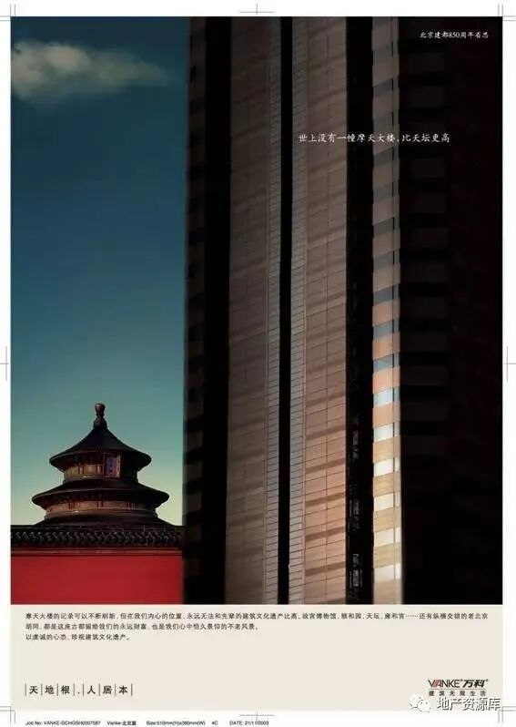 注:2003年,为了提升万科的品牌形象,万科推出了“天地根,人居本” 的公益广告。