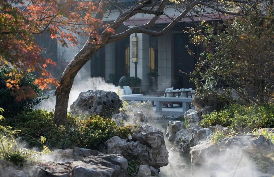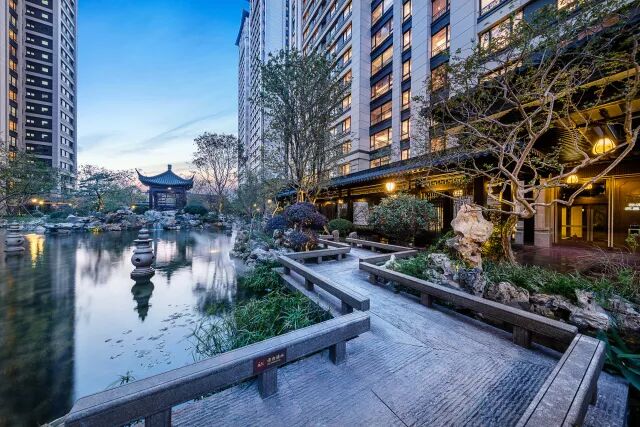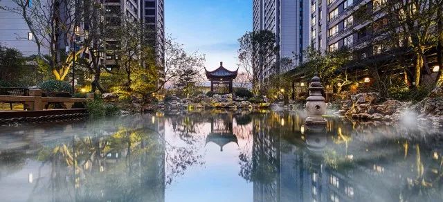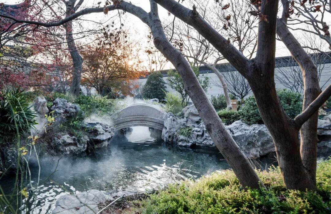 福建好古,建发央玺凭古为趣。设计师从“桃花源”的意境出发,借鉴传统山水园神韵,将“居山水之间”的传统处居思想与“出则繁华,入则幽静”现代人居追求完美糅合,探索古典园林在当今时代的全新演绎。