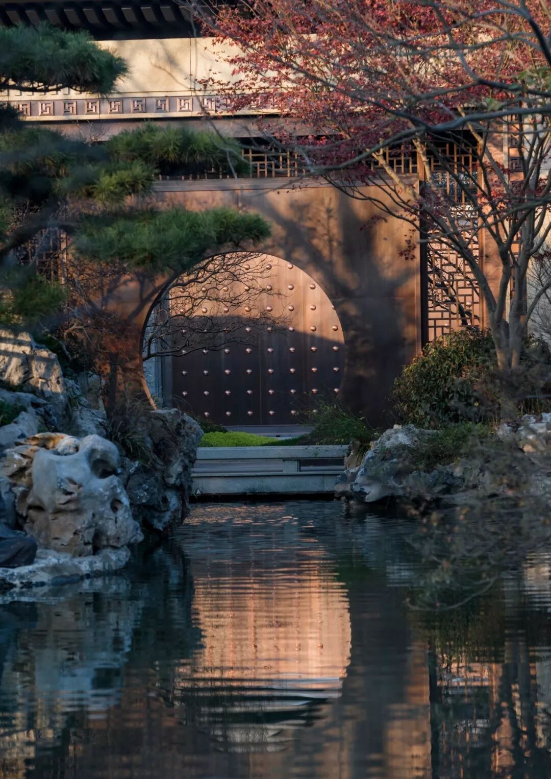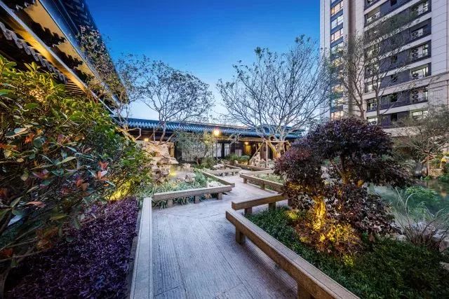 中国古代的大宅,皆讲究院落关系,尤其以北方的宫式园林为主,三进三出的轴线感和仪式感,装点着主人们对人生圆满的成就感,而南方不同,南方的园林没有那么多仪式感,讲究悠游山水的情怀,如何在方寸之间展现鸿大志趣?八百年前,网师园做到了;今天,央玺也在努力尝试,央玺示范区地块不大,第一眼很难想象这是一个顶级豪华的社区景观,但是当我们步入其中,紧凑的布局和别有洞天的惊喜,拉近了心灵和场所的联系。