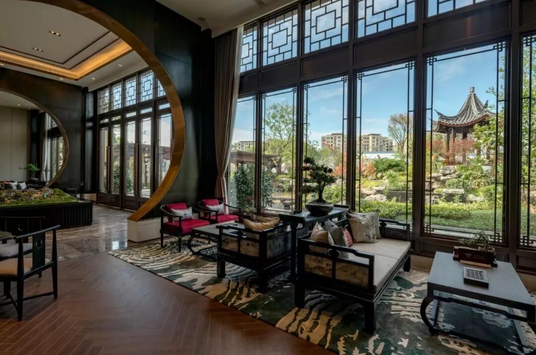 该案福建永安建发·玺院展示区取名清晖园,展示区清晖园以留园为蓝本,以传统造园原则来演绎国人对“以隐逸味高,以游放山水为傲”的文人情怀,以“居然山水之间,情寄室外燕城”的理念,追求古代文人雅士的“居尘而出尘”的江南山水园林。整个空间布局采用一轴三进院的设计手法,入口布局中轴对称,序列严整,数进门楼,内庭外院,诠释东方递进美学。