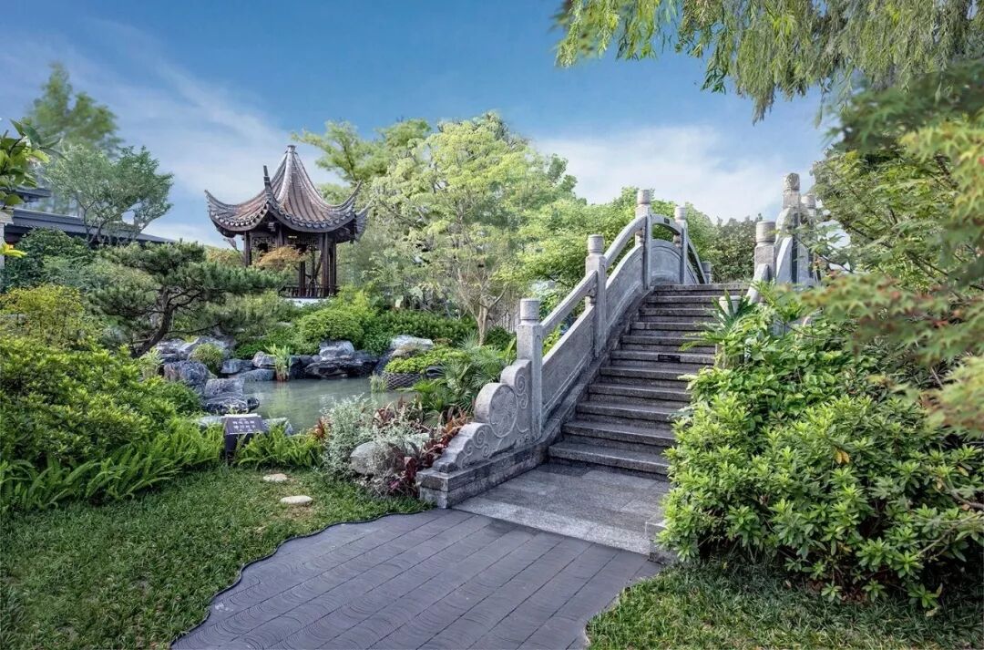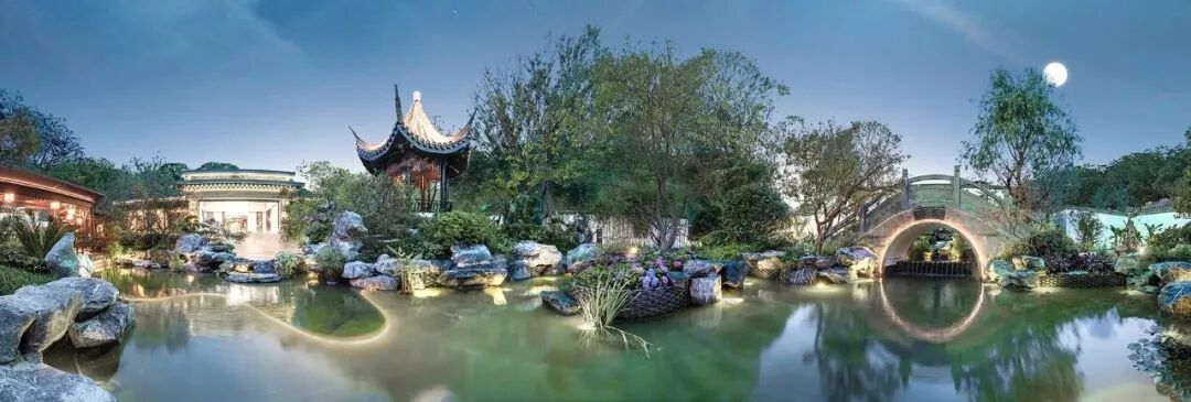 该案以苏州园林为蓝本,结合现代的造园工艺,运用框景、对景、漏景、夹景、透景、障景等设计手法,力筑一方具有文人情怀与气息的园林。