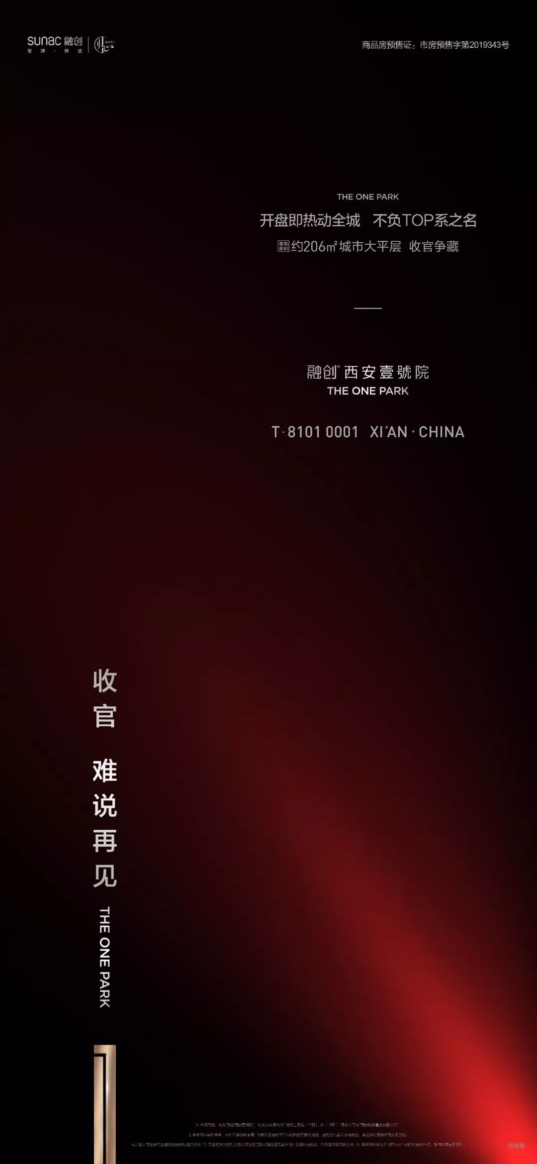我们的故事,从屹立于中国高端人居序列的融创壹号院系血统开场,到站立在千年世界古都封面的磅礴之姿,以充满优雅色彩,极具生活温度的壹号圈层渐入佳境,在最后项目收官之际,不遮藏不低调,用一系列向城市告白、向一切大声说“感谢”达到营销推广的终极高潮,这一路走来,是对这个项目骨子里骄傲的解读,也是对生活回归纯粹的挖掘,所以结尾时的字里行间,都是西安壹号院最真实的情感表达。![]()