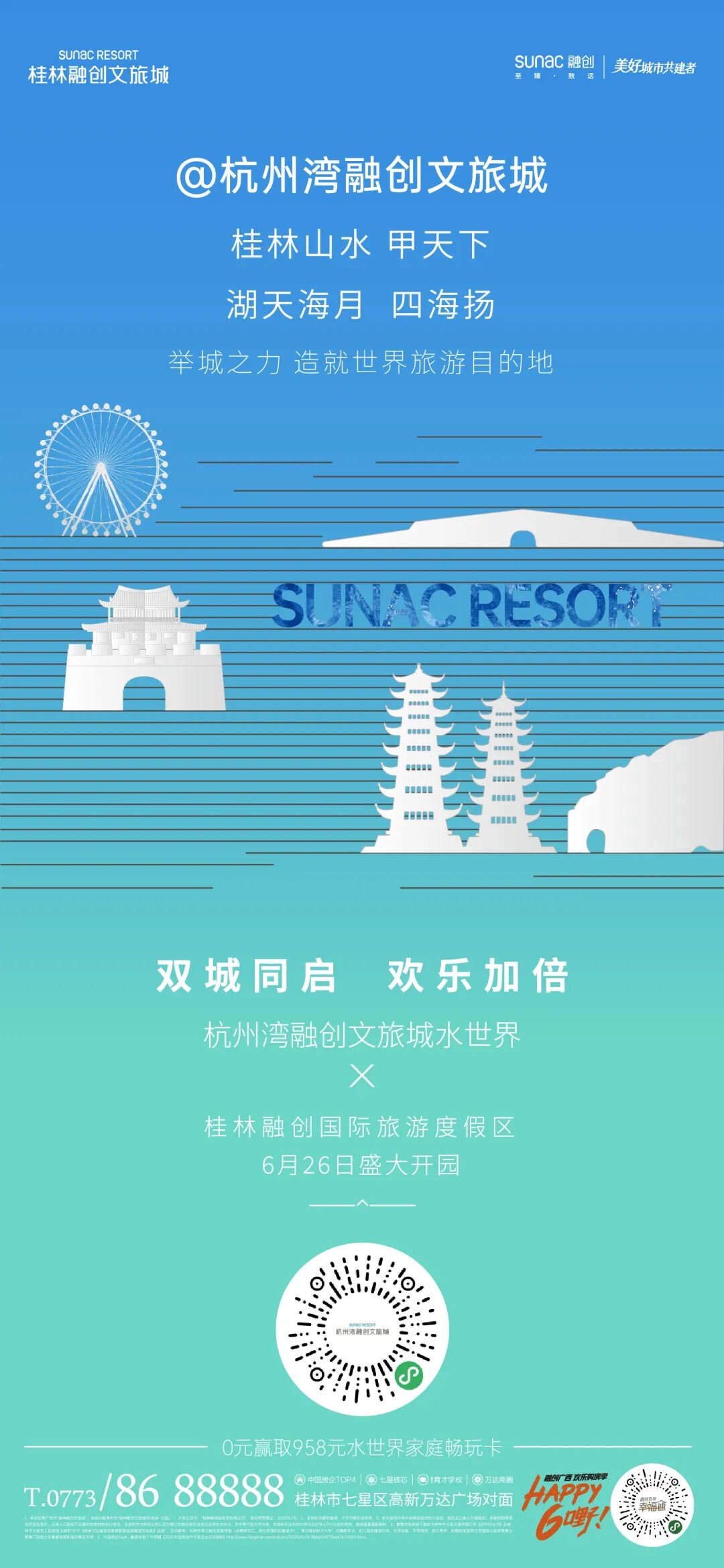 通过全国融创文旅城恭贺贴片,联动释放欢乐能量,进一步提升水世界的开业声量,增强项目势能,将水世界开业的激昂氛围推向另一个高潮。