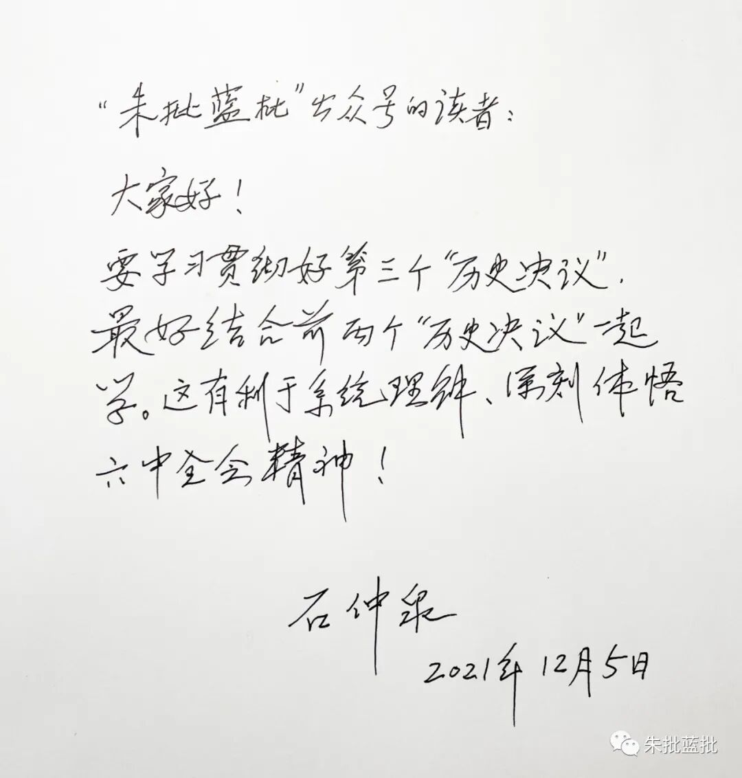 石仲泉亲笔寄语: