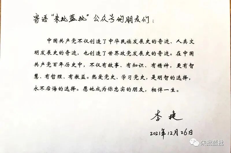求是杂志社原社长李捷亲笔寄语: