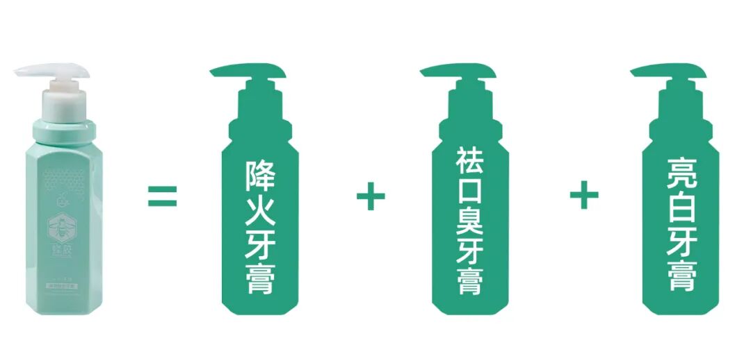 这样一瓶中蜜蜂胶牙膏,相当于同时拥有了:降火牙膏、祛口臭牙膏、亮白牙膏。