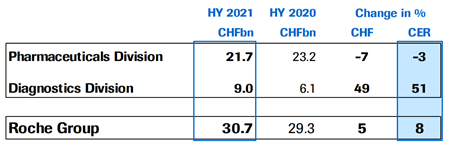 其中Ronapreve 是针对 COVID-19 的抗体组合,是主要的增长动力,主要在德国、意大利和法国。Hemlibra(+95%)和Ocrevus(+38%)也保持增长,尤其是在法国和德国。Kadcyla销售增长了27%,主要在法国持续增长。Actemra/RoActemra的销售额增长了16%,用于COVID-19重症肺炎住院患者。Tecentriq增长了17%。